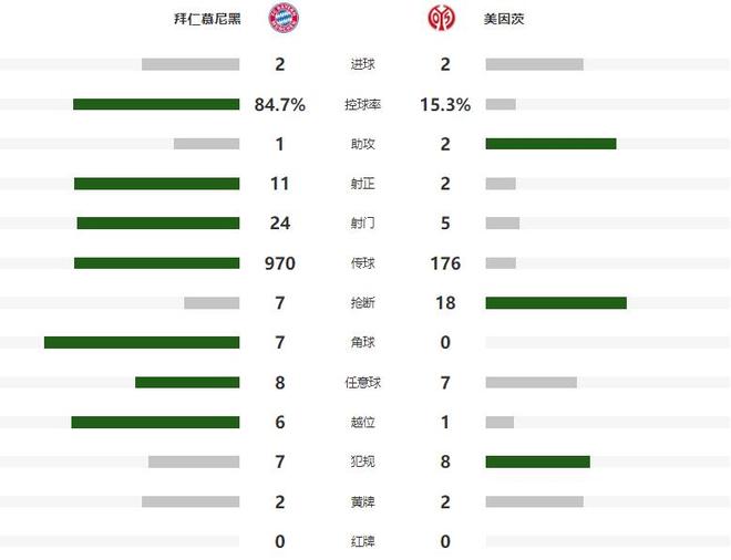 隨著本場比賽的結束,拜仁對美因茨的主場八連勝和本賽季德甲全勝紀錄被終結,但是他們德甲前十四輪聯賽打進51粒進球,創造了聯賽的歷史,盡管沒有拿到三分,但仍然在積分榜上遙遙領先穩居第一。