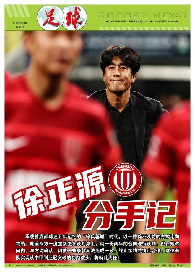 記者魯蜜報道承載著成都球迷五年記憶的“徐氏蓉城”時代,以一種猝不及防的方式走向終結。此前雙方一度重新坐在談判桌上,就一份兩年的合同進行談判,相對進展還較為順利。不過變化也來得很快,在短時間內,雙方均確認,雙方就一些條款無法達成一致,終止續約并終止合作。這位率隊實現從中甲到亞冠突破的功勛教頭,將就此離任。而在終止與蓉城的談判之后,徐正源一度也和北京國安傳出了緋聞,雙方甚至進行了深度接觸,不過隨后被北京相關方面“叫停”。