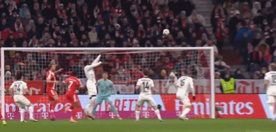 主場作戰的拜仁牢牢掌控主動,比賽的第20分鐘,凱恩頭球沖頂被門將下意識一擋。
