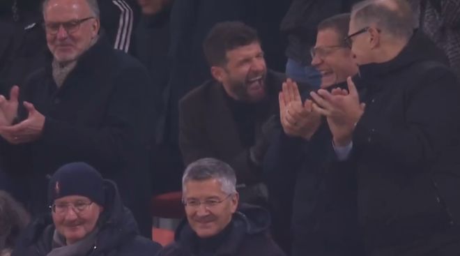 比賽的第28分鐘,凱恩禁區右肋似傳似射,格納布里底線回傳,無人盯防的卡爾推射破門,1比0!在卡爾打破僵局之后,看臺觀戰的穆勒與拜仁管理層喜笑顏開。