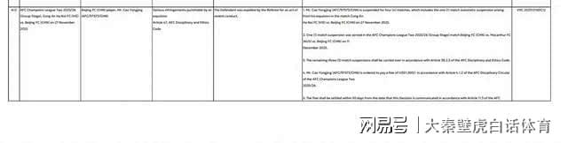 ④、曹永競被責令依照亞足聯(lián)紀律通告第4.1.2條,收到通知后,30日內(nèi)支付1500美元罰款。